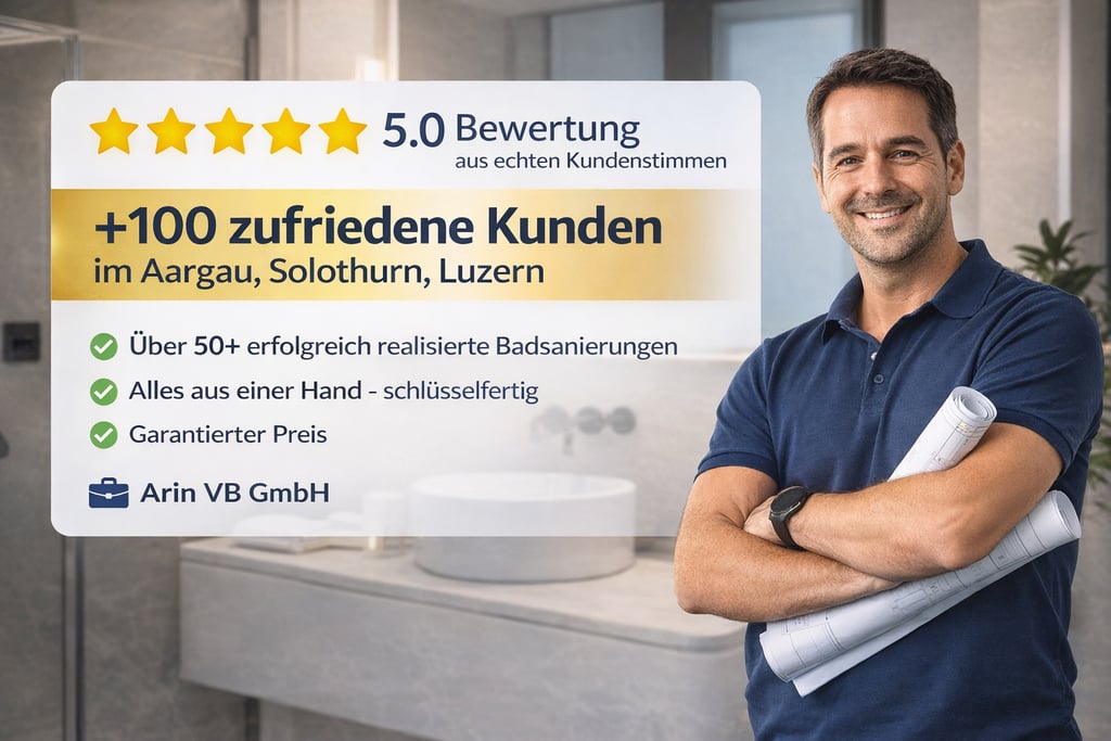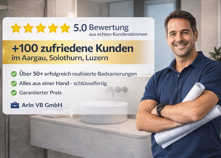 Ein Badezimmer ist mehr als nur ein funktionaler Raum – es ist ein Ort zum Wohlfühlen, Entspannen und Auftanken. Wenn Ihr Bad in die Jahre gekommen ist oder Sie sich ein modernes, stilvolles und komfortables Badezimmer wünschen, sind Sie bei der Arin VB GmbH genau richtig. Wir sind Ihr zuverlässiger Partner für Badsanierung im Aargau und Solothurn und realisieren Ihr neues Badezimmer sauber, termingerecht und aus einer Hand.