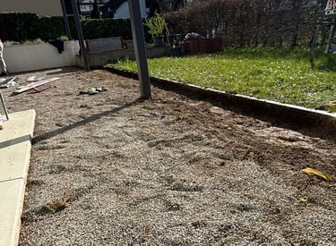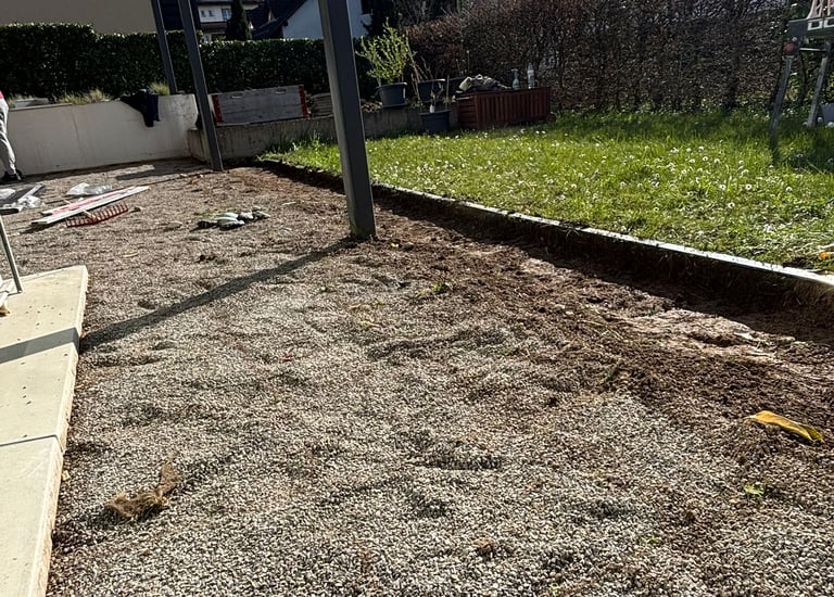 Fachgerechte Vorbereitung des Untergrunds für neue Terrassenplatten im Kanton Aargau – die Basis für eine stabile und langlebige Terrassenfläche.